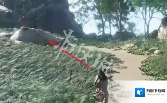 28、去箭头处的石头上。