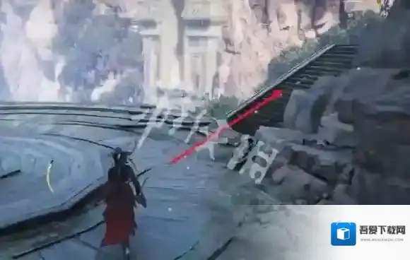 8、走到图中的位置,从右边上楼梯。