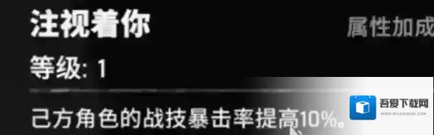 1、注视着你:队友使用战技时暴击率提升10%