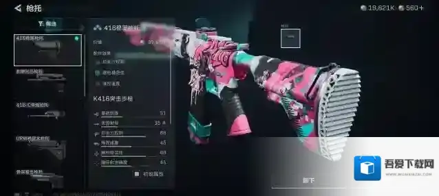 枪托选择416稳固枪托,虽降低一小部分的操控速度,但是拥有可管的据枪稳定性以及后坐力控制。