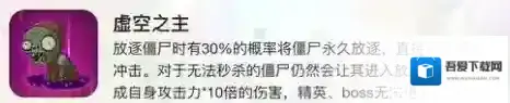 最终五阶技能效果,放逐僵尸时有30%的概率永久放逐,直接释放爆炸冲击,对于无法秒杀的僵户会将其放逐并造成自身攻击力l0倍的伤害,说白了就是有30%的概率秒僵尸并爆炸,秒不掉的就虚化,但无法虚化精英及boss