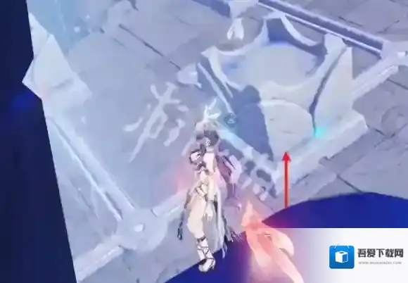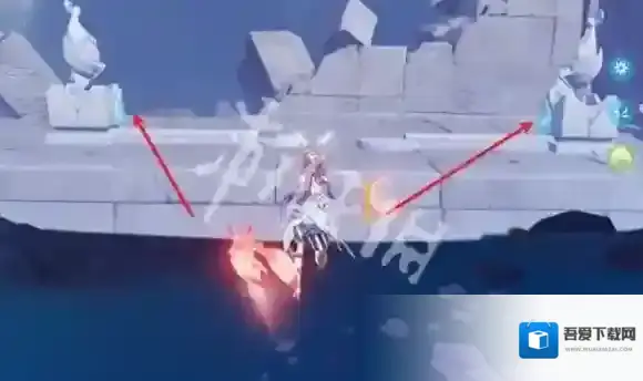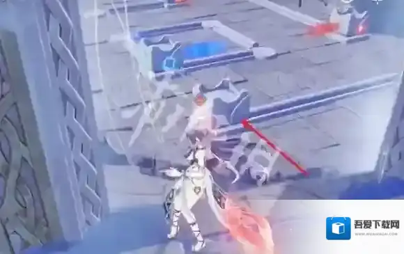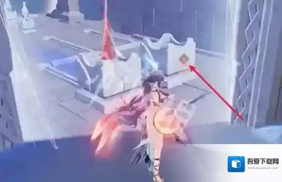 4、走到图中的位置,将箭头处的雕像拉过来,拉三次到镜子前即可。