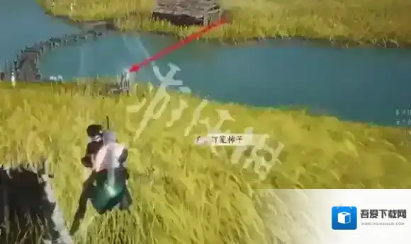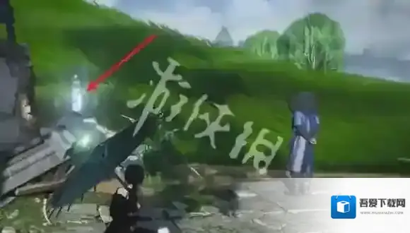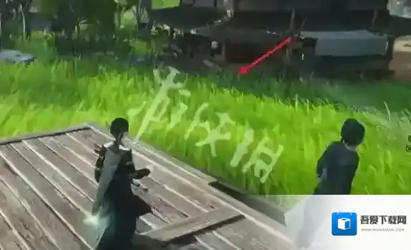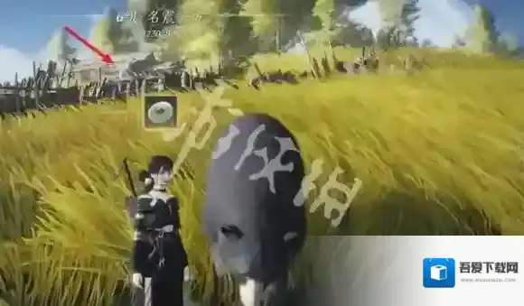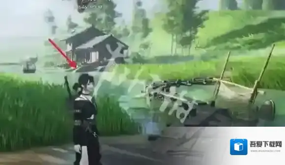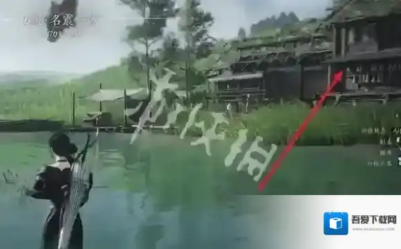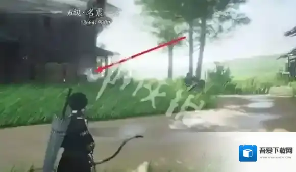 2、到达后,去箭头处房子的后面,有个宝箱。