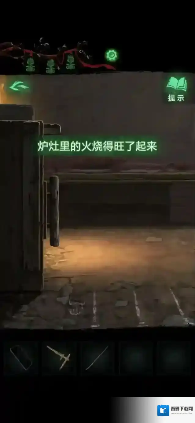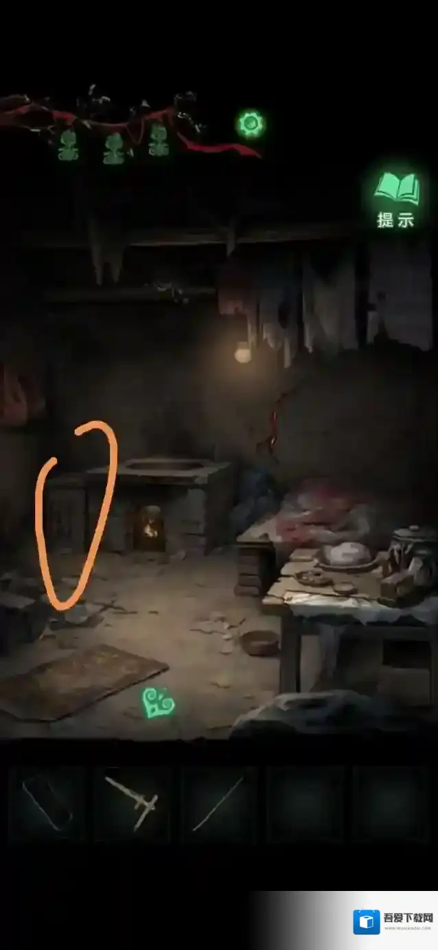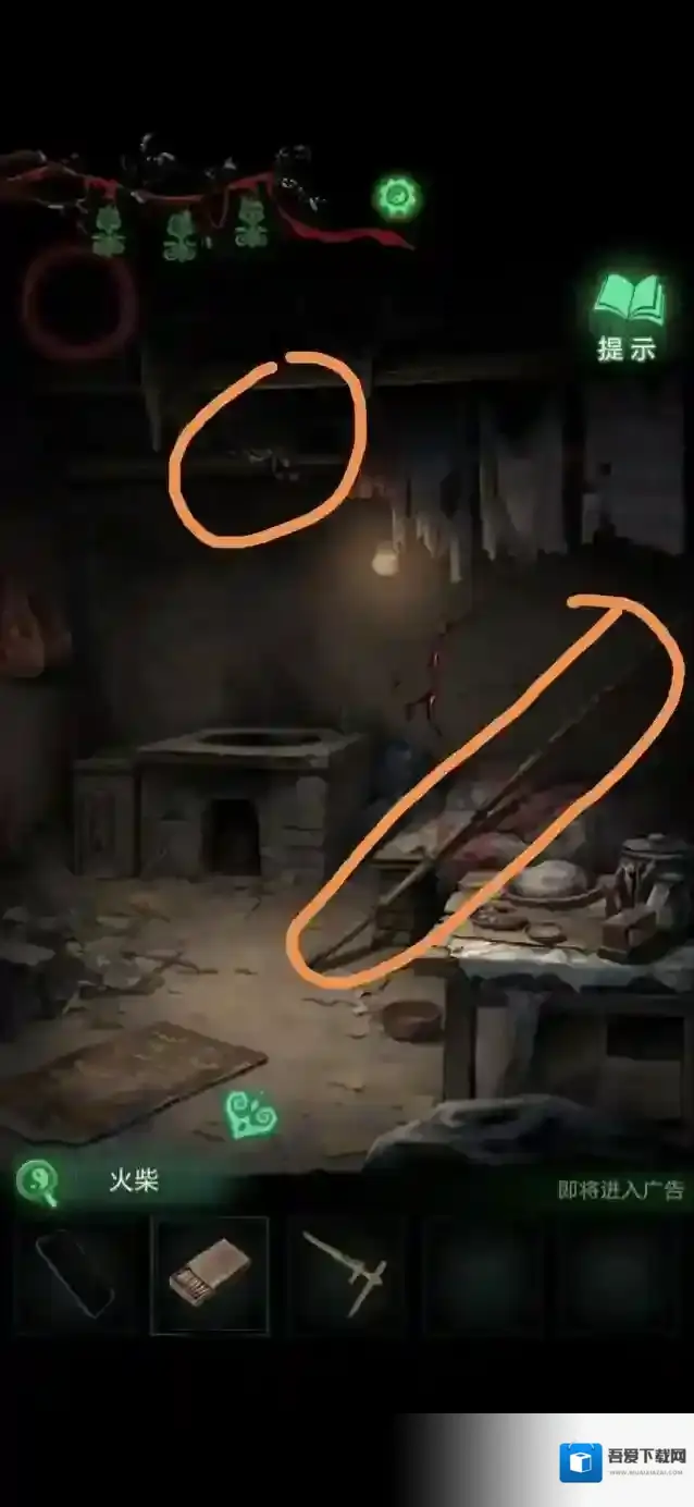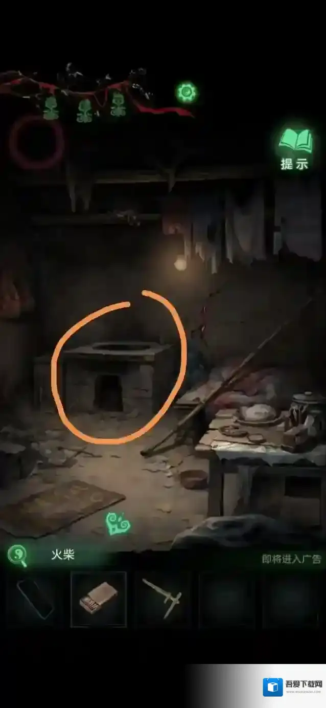 进门,点击桌子上的泥巴捏成小人,然后用火柴点灶,根据小卖店里通过手机看到的数1321拉风箱把火烧旺