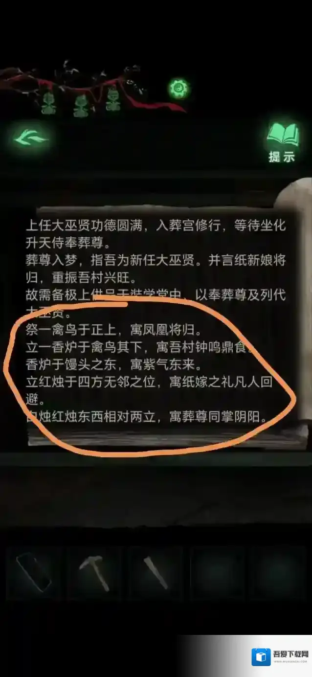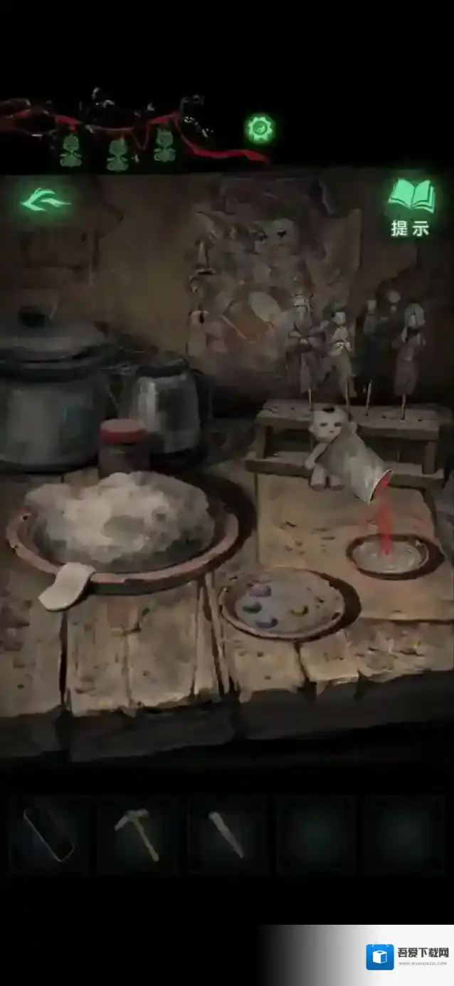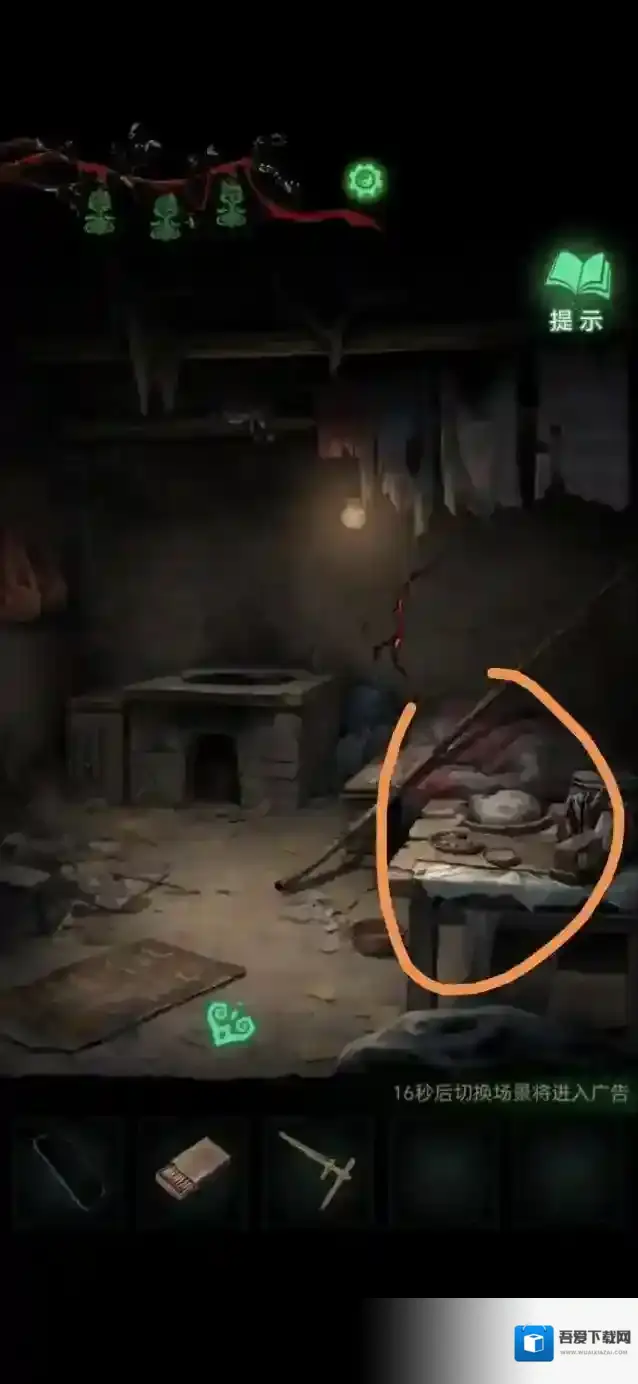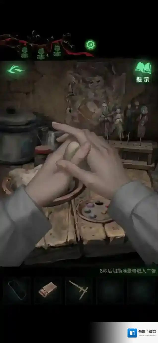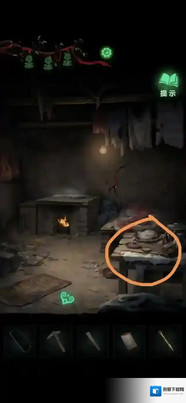 进门,点击桌子上的泥巴捏成小人,然后用火柴点灶,根据小卖店里通过手机看到的数1321拉风箱把火烧旺