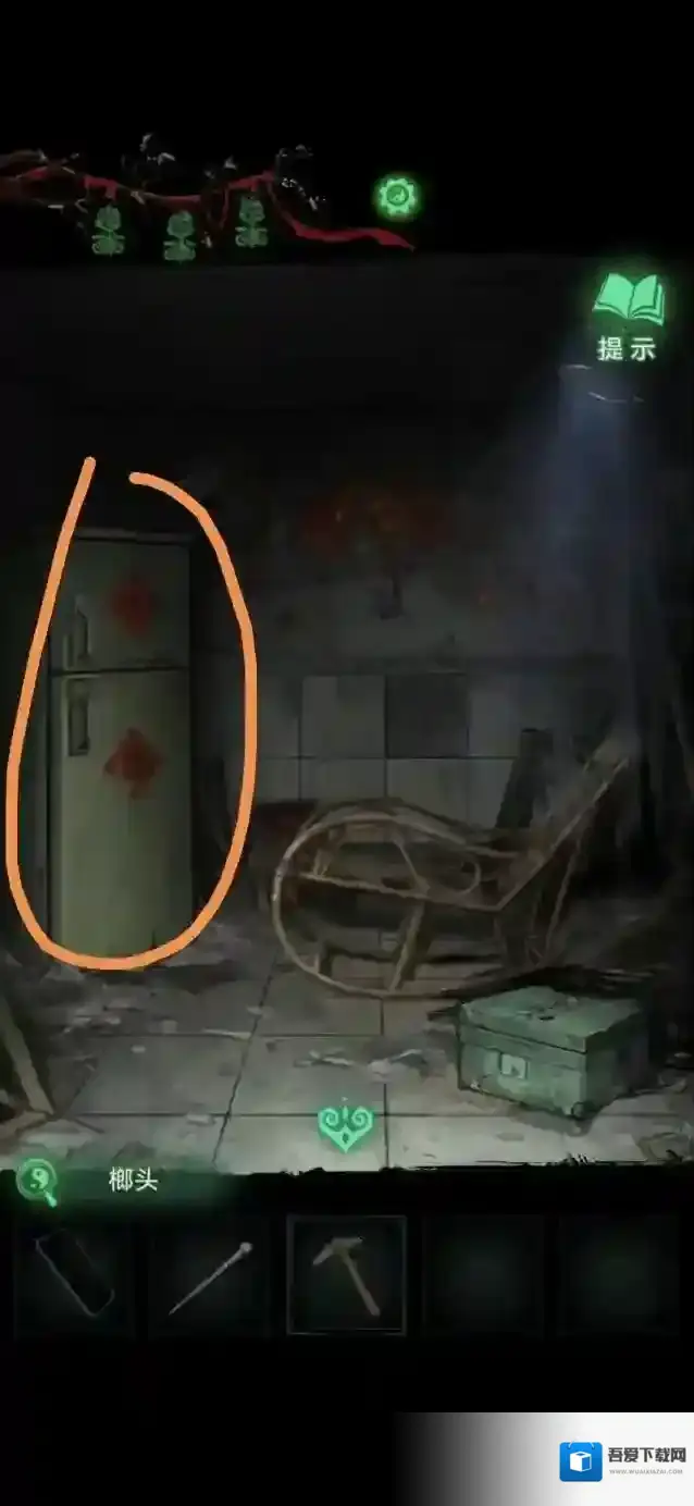 进屋,把棺材钉钉在冰箱的棺材里,获得短木条