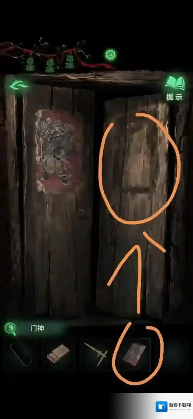 用手机看炉子里的小孩鬼,有点高能,然后把豆奶丢进炉子里,获得门神