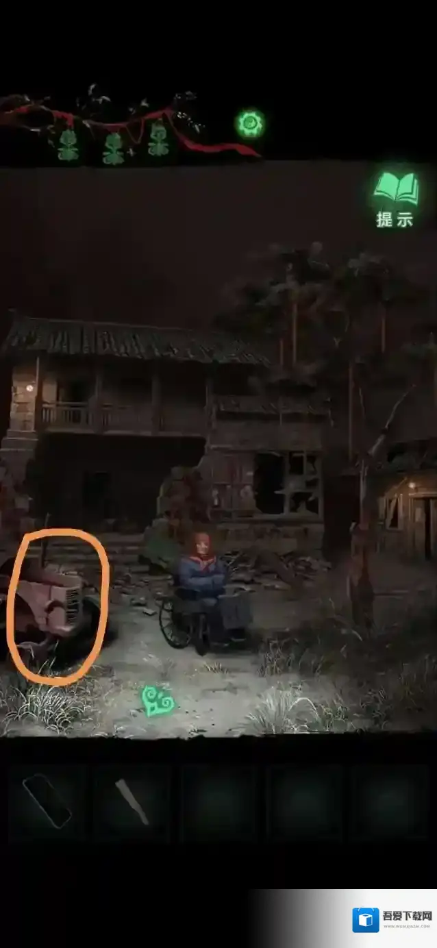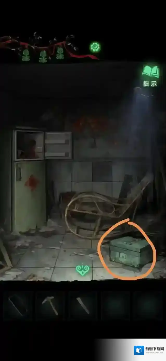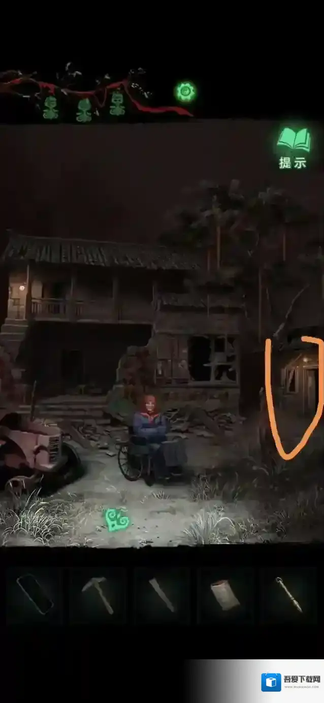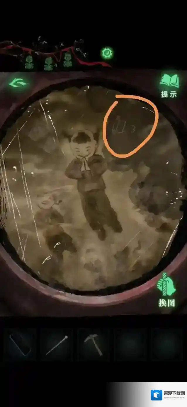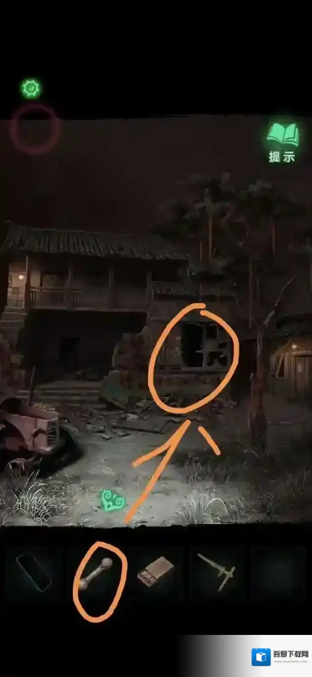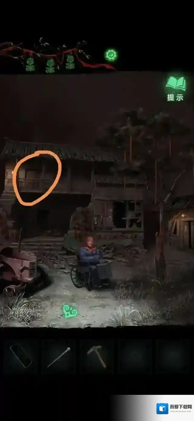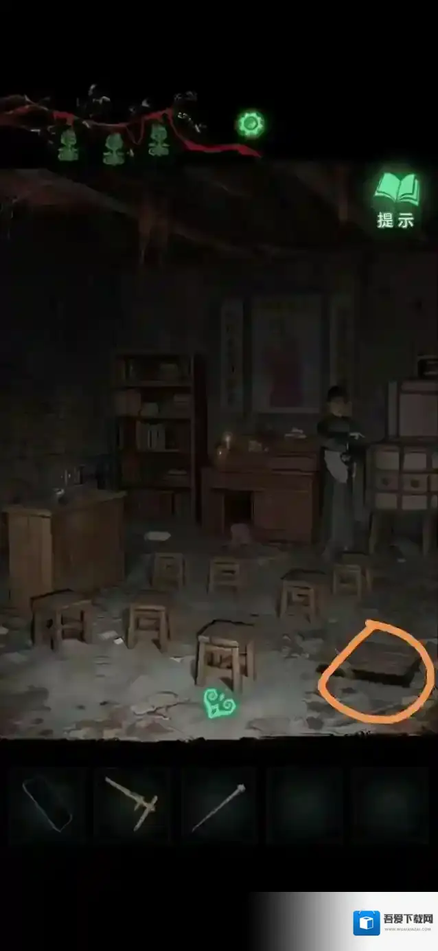 用榔头把房间墙上的砖敲碎,把面人喂给母子鬼,获得短木条