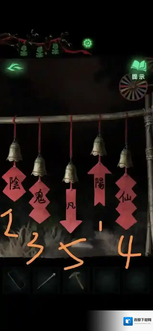 根据西洋镜上的图案和书架上的资料,摆放桌子上的物品,摆放好后获得祈福风铃