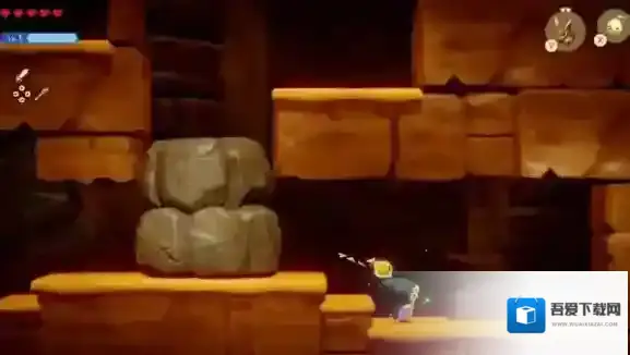 玩家要去格鲁德沙漠,这里地形不好找,玩家可以使用跳床往沙漠的西南方向前进,等到达下图位置后使用送风机吹走沙子即可看到心之碎片。