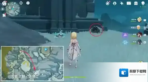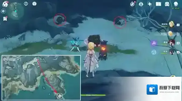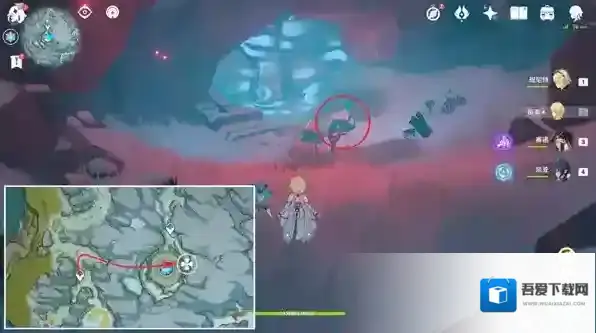 1、在传送点处往西走进入洞窟,使用“深赤之石”就能打碎坚冰,而两个遗迹守卫就在洞窟的深处。