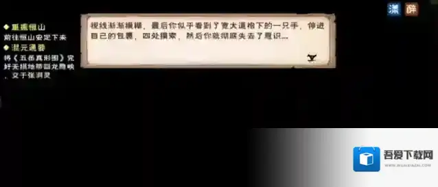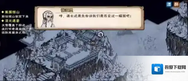 32.去往无极宫(6,23)找到玉霄子,游方老道,选择仔细描述,无极宫,搜索,选择摆正画像获得五岳真形图×1,选择就这么办,对话张洞灵,选择近在眼前