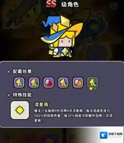 技能: 每8秒召唤4波流星雨,每波造成500%攻击伤害。技能冷却属性每达到30%,就能额外召唤一次。