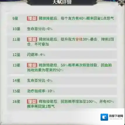 吕布的9星,11星,14星,16星的天赋都是质的提升,怒气叠满之后基本能一回合秒一到两个敌方武姬。