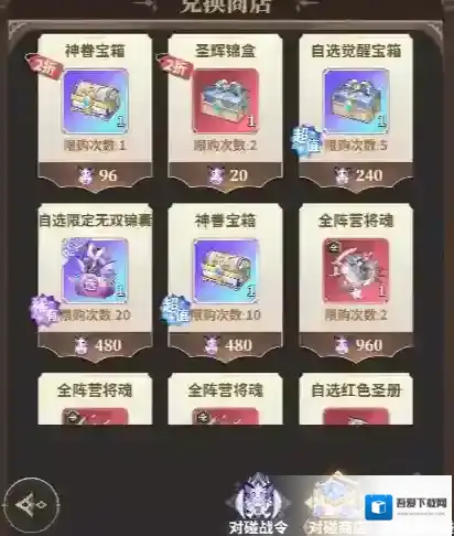 最后就是对对碰商店了,优先兑换神眷宝箱和圣辉锦盒,觉醒宝箱也是根据自己需求来考虑兑换。再有多余的积分可以考虑限定圣册和限定秘宝。限定秘宝只能在活动获取,限定圣册部分也是只能在活动里面进行自选。总之还是根据自身需求进行兑换。