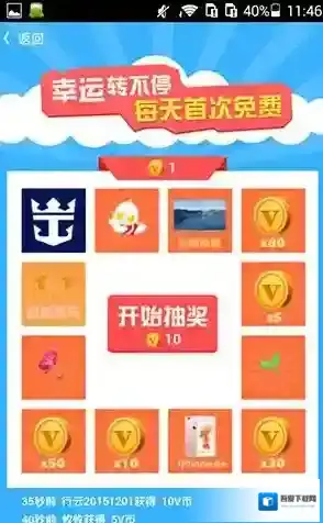 3、进入以后,会提示你抽奖的规则,每天首次使用幸运转盘是免费的,后面再使用转盘功能就需要使用V币了,如下图。