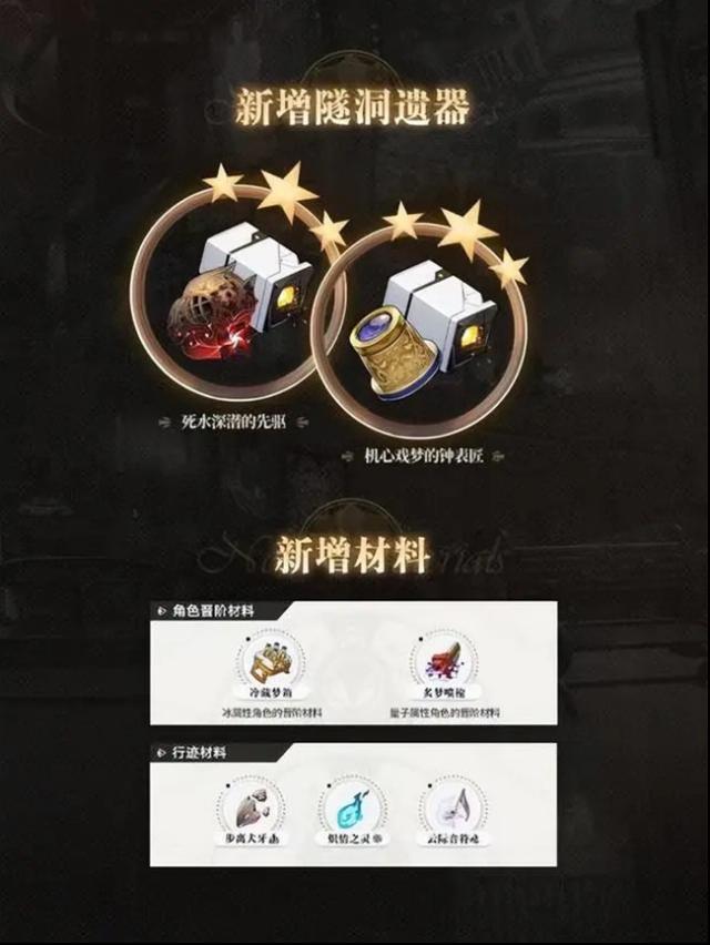 新增冰属性与量子属性角色的突破材料,不用多说,自然是为两位新角色推出的,只可惜不能提前攒嫁妆了。
