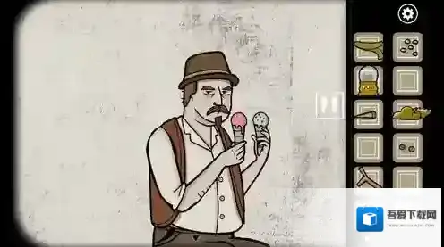14.将两个冰淇淋交给左边的大叔吃,取下大叔的帽子。