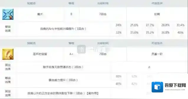 2.atk偏低,增伤技能只有一个不合格的蓝魔放,即使有宝具本,宝具伤害依然不算特别高。