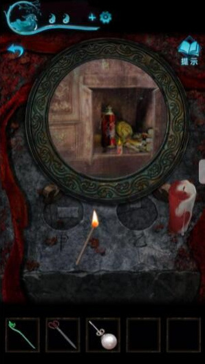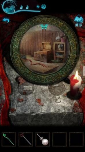 9、我们打开山洞中刚才的房间,进去先翻柜子,即可得到一个珍珠耳环,再用手链将胶带扯开,即可得到神像以及蜡烛。