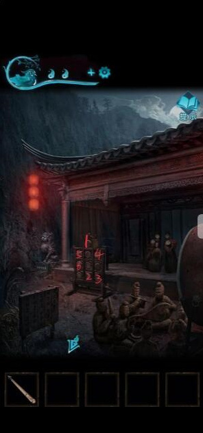 8、我们到车的位置,按照顺序来点香,点完即可获得字迹,然后我们可以解开山洞前石狮子下的机关,即可获得一把钥匙。