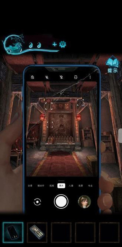 12、拾取易寿堂桌子上的“扎纸手机”和“纸扎寺庙”。