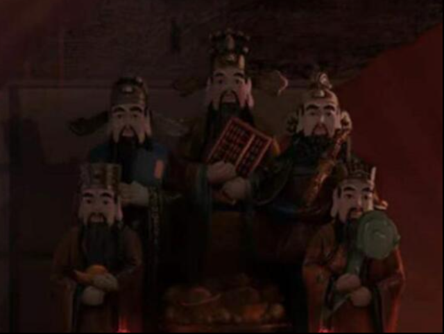 10、五路财神画像有每个方位财神对应的手持法宝,将”小如意、小元宝、小金鞭“都摆到门口的“五路财神像”上。