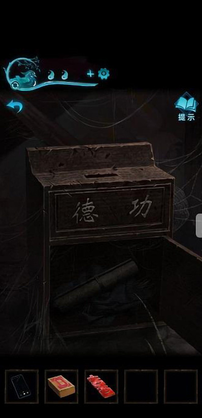 24、拾取“复印咒符”后也要记得拿走原来的“咒符”,再将“小零件”镶嵌在易寿堂柜子下方“机关”上面。