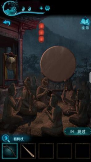 11、妹子在下面拿拐杖将佛头移动至机关上,再去外面将树杈上的皮影剪下。