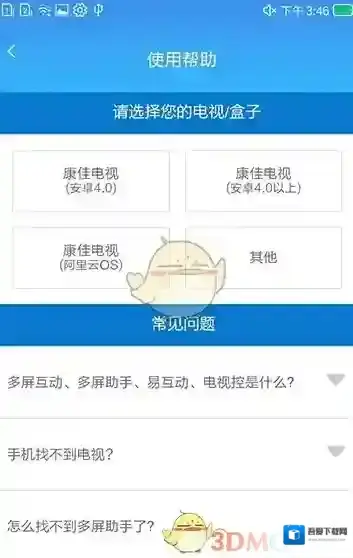 您可以根据您的电视型号选择不同的选项,下方的常见问题一定要注意查看,认真读过后可以为您减少很多不必要的麻烦呢。