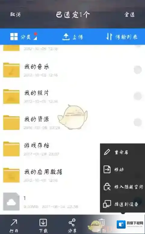 3、打开百度网盘,点击上传-全部,找到要上传的文件,这时候伪装成非视频文件的文件就可以上传了。