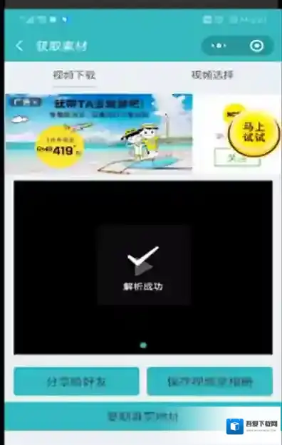 8、解析完成后视频就不带水印了,保存视频到相册后再发朋友圈即可