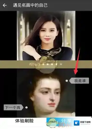 4、系统将就会自动匹配与您相似的名画,如果不知道名画中的人物是谁,我们点击“我是谁”,名画的下方就会详细介绍该名画中人物的详细信息。