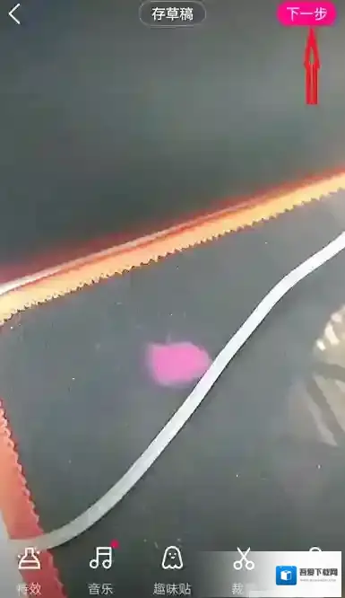 进入预览界面,我们可以添加特效和音乐,添加好后点击右上角的下一步。