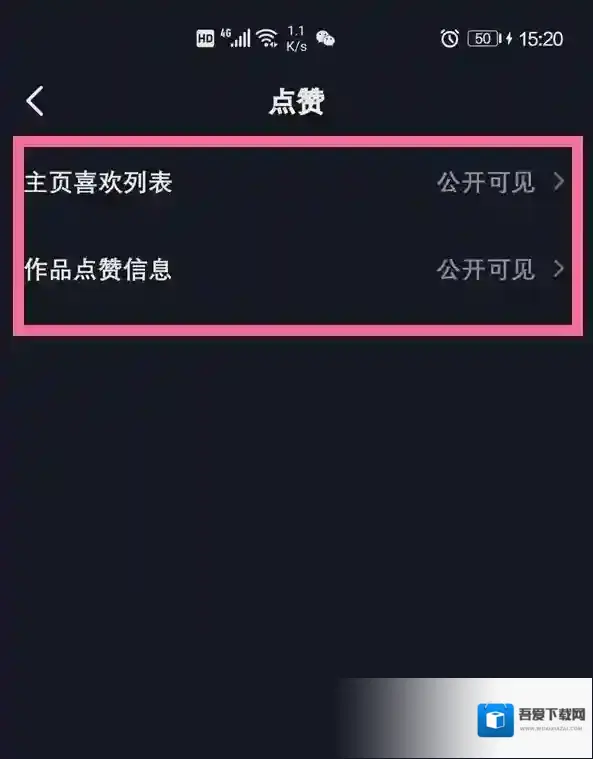 4、将主页喜欢列表和作品点赞信息设置为“公开可见”即可。