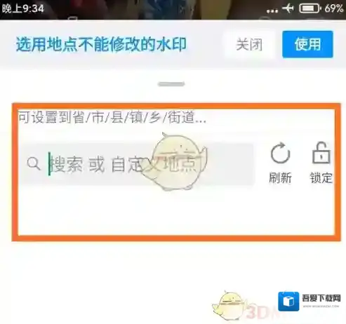 5、最后我们点击拍照页面的定位标志,将自己想要输入的地址输入进去就好啦。