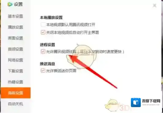 4、勾选允许腾讯视频驻留选项。