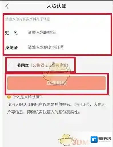 5、在实名认证的页面中,用户可以通过输入个人信息,点击授权功能选项并进入到人脸验证页面,验证成功即可。