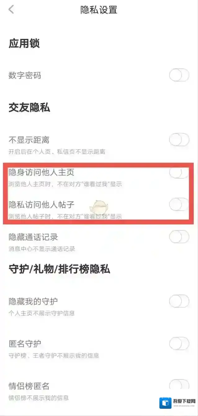 《他趣》隐身访问设置方法 2025-07-13 19:16:38 编辑: 小榆 分类: 应用教程 • 阅读: 673 1、打开他趣APP,点击左上角进入“我的”页面。 2、在我的页面点击右上角进入“设置”页面。 4、在隐私设置页面,点击开启隐身访问他人主页和隐私访问他人帖子,这样就完成了。 本文内容来源于互联网,如有侵权请联系删除。 他趣应用相关内容 全部 他趣访问 他趣点击 他趣 他趣页面 他趣在我 《他趣》聊天室进入方法 1、首先我们需要完成帐号认证。 2、然后点击“交友”。 3、选择聊天室类型。 4、再选择聊天室。 5、最后,进入聊天室即可聊天。 本文内容来源于互联网,如有侵权请联系删除。 2025-07-13 发表回复 请登录后评论... 登录后才能评论 评论列表 ( 0条)