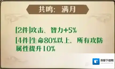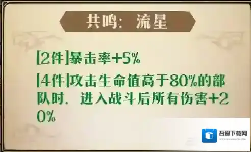 4件套效果:攻击生命值高于80%的部队时,进入战斗后所有伤害+20%