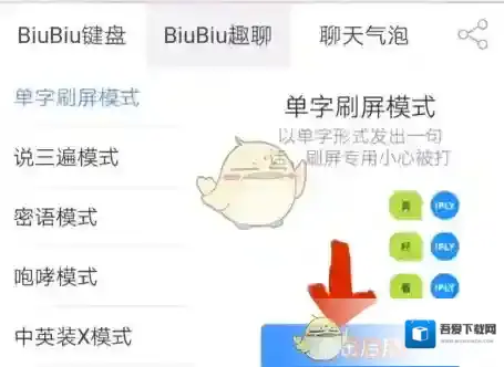 4、可以看到单字刷屏模式,点击,并选择点击启用即可。