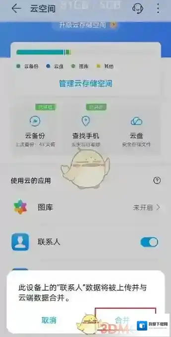 4、开启合并联系人后,我们就可以在别的设备上通过华为云空间来恢复联系人了。