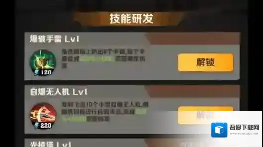 2、新手推荐优先提升温压弹、装甲车、干冰弹、高能射线、制导激光、电磁穿刺等普通攻击技能。