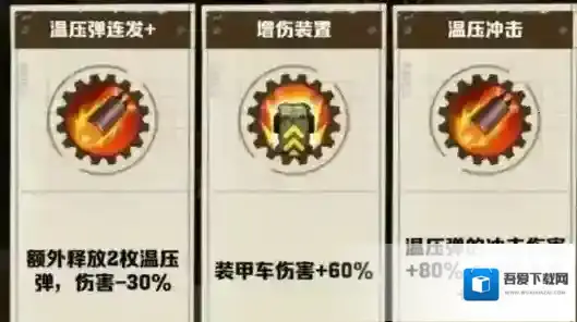 3、其次可以培养温压弹,装甲车和干冰弹泛用性和强度都比较高的技能。