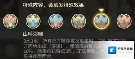 同时触发山呼海啸的羁绊己方全体魂师攻击时有20%几率触发沼泽效果,该效果会降低沼泽内的敌方魂师10%的速度和5%的效果抵抗沼泽持续2回合,搭配唐三的蓝银缠绕的降低速度效果可以大大的降低敌方速度