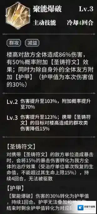 三级时携带了圣铸符文的目标对楼高造成的群攻类伤害降低15%