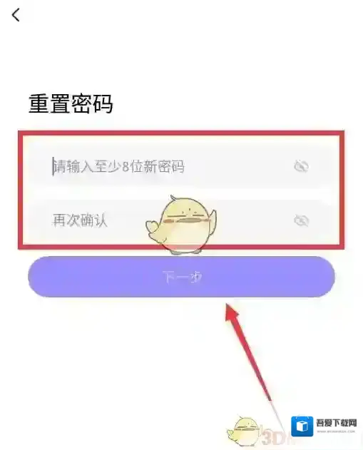 4、然后填写两次新密码,点击“下一步”即可修改成功。