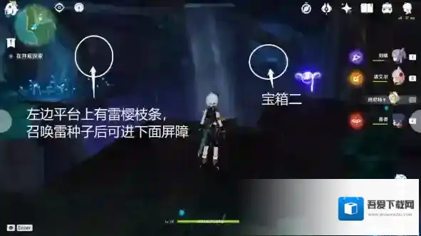 前往雷樱枝条平台,召唤雷种子,往下跳进入屏障