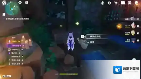 切换丽莎,使用雷元素攻击「天狐雕像」,取得「镇物」