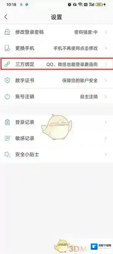 5、来到设置的页面点击三方绑定;